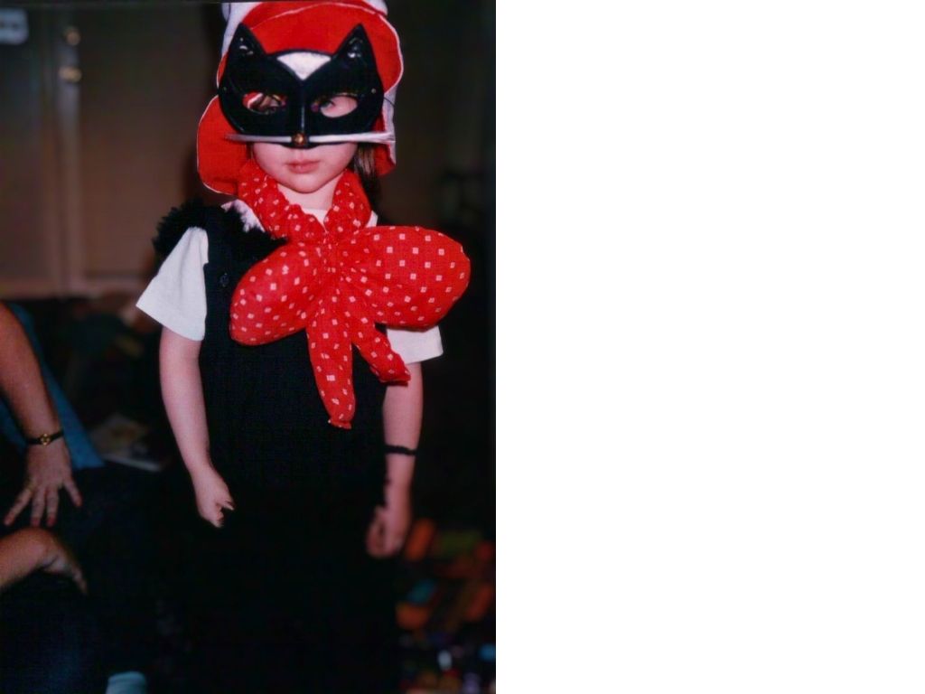 My mom sewed a Cat in the Hat costume complete with a hat she made out of red and white felt. She also sewed a giant red bow just like the character. My sister loved playing dress up with princess dresses, tutus, and animal mask, so this was fun for her! Here is a similar idea.