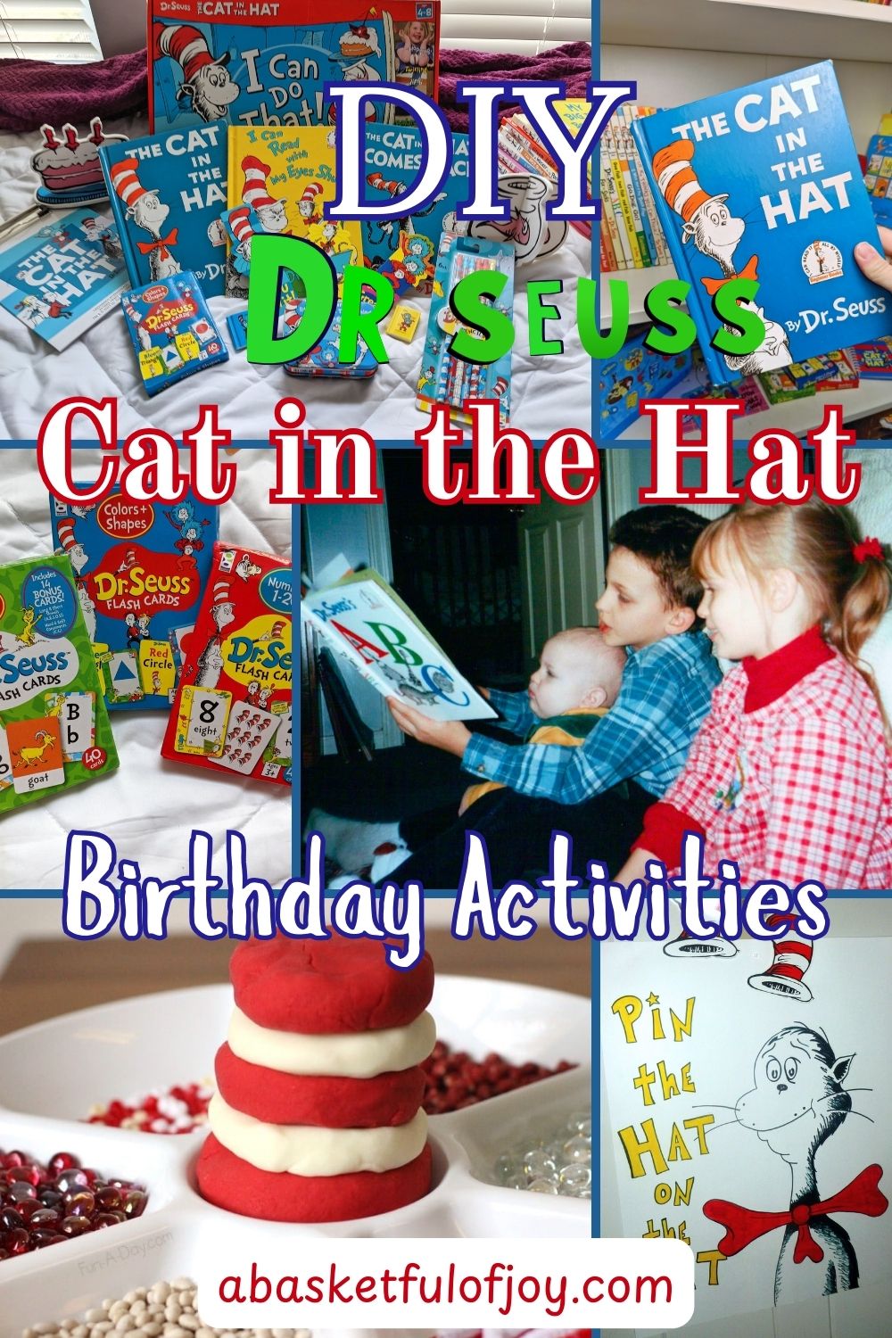 These books were the inspiration behind my little sister learning to read at only three years old. She would sit in her high chair and ‘read’ the stacks of books from memory. When she was turning four, she requested a ‘Cat in the Hat’ birthday – all her own idea! My mom and siblings and I were so excited and had so much fun making her birthday special for her. Follow along for some ideas for you to put on a special Cat-in-the-Hat birthday for a little one in your life!