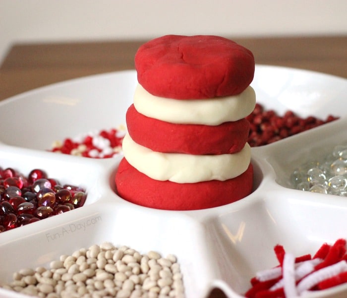 In my recent excitement of making sensory bins, I have come across these Dr. Seuss themed sensory bins! They are so fun to make and would be perfect to keep little ones entertained at a party. You can also add playdough for kiddos to make a hat for the cat out of red and white playdough! I love this idea from fun-a-day.com.