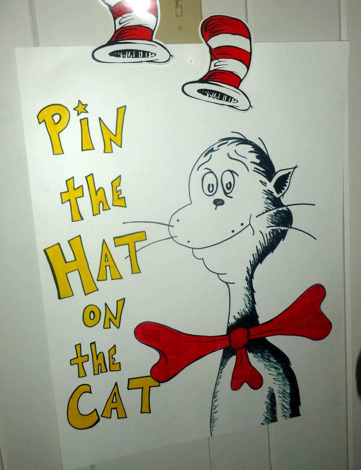 Little sister also had to find four Cat-in-the-Hat drawings that we had made and hid around the house for her along with a gift. She loved this treasure hunt! Another idea is to play ‘pin the hat on the cat’ by making a simple poster and hats like this one from catchmyparty.com.