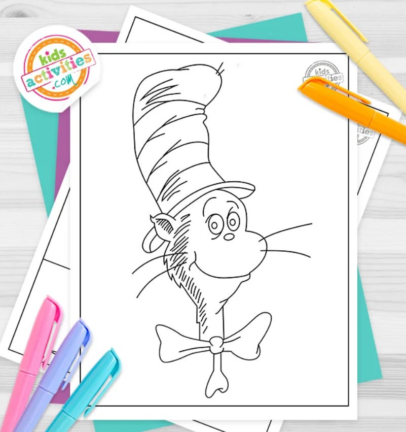 There are many free coloring pages of the Cat in the Hat at kidsactivitiesblog.com: